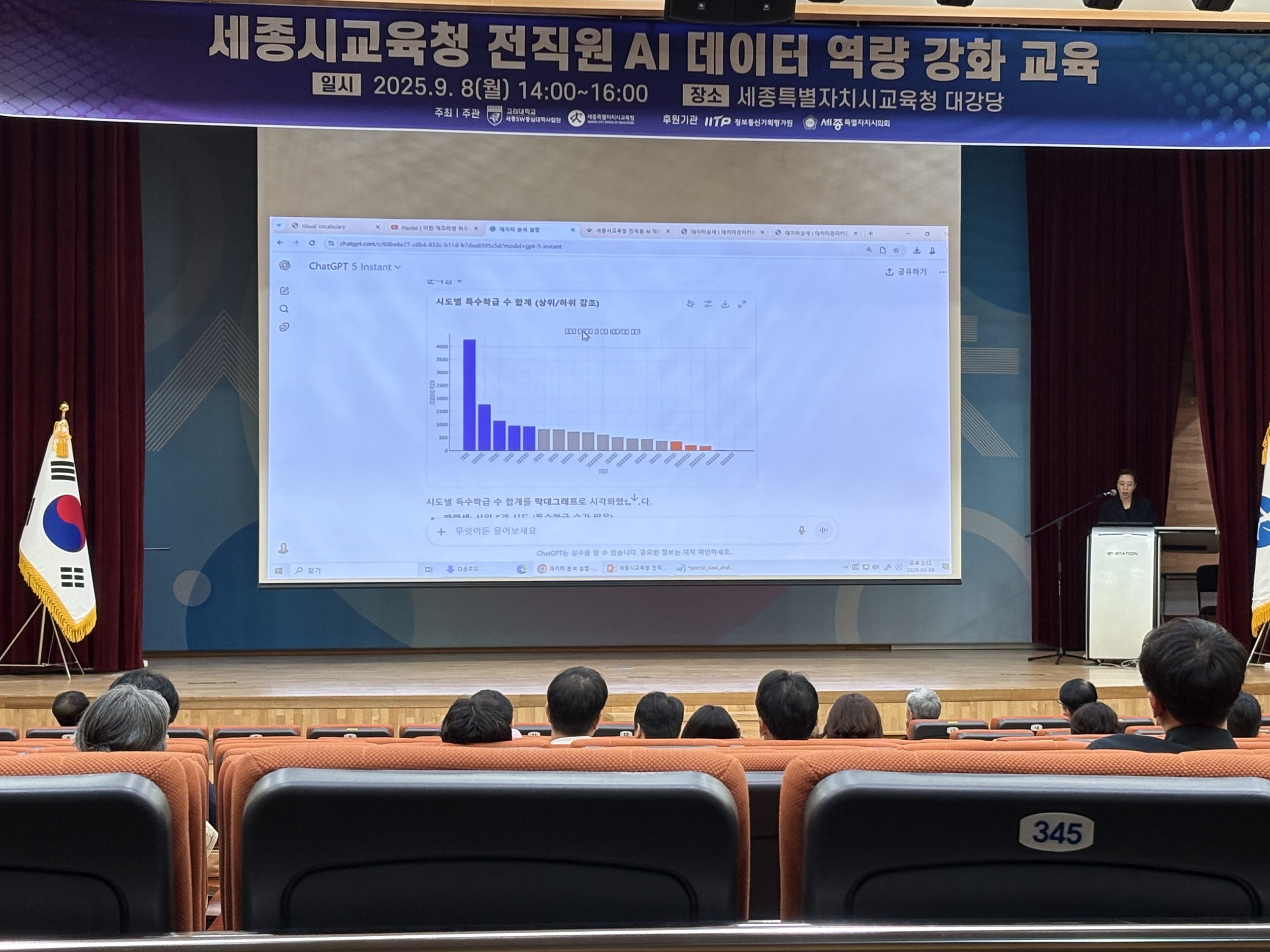 On September 8, Korea University Sejong Campus Sejong National Program of Excellence in Software conducted artificial intelligence (AI) data competency enhancement education for all staff of the Sejong City Office of Education. A total of 272 people participated in this education program, with the goal of improving practical data analysis capabilities and AI utilization competencies for digital transformation in the public sector.